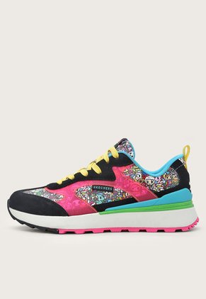 ¡Todo está a punto de volverse súper kawaii cuando tokidoki trae sus divertidos personajes a Skechers en esta divertida colaboración! Mejora tu estilo con un toque colorido y lindo en Skechers Street x tokidoki Sunny Street. Presentan un elenco estelar de personajes tokidoki en una parte superior de cuero, malla y material sintético con bloques de color.