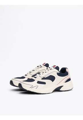 Añade un toque retro a tus looks con estas tenis, que combinan un exterior con mezcla de texturas y una entresuela con relieve.Características• Exterior de poliéster• Interior de poliéster• Plantilla EVA extraíble• Suela de goma termoplástica, compuesto biológico y poliuretano• Paneles con mezcla de texturas• Diseño color block• Detalle de malla en el talón• Parche de Tommy en la lengüeta• Etiqueta de Tommy Jeans en el lateral• Detalles distintivos de Tommy JeansTalle y corte• Diseño de corte bajo• Con cordonesComposición y cuidados• 100 % Poliéster