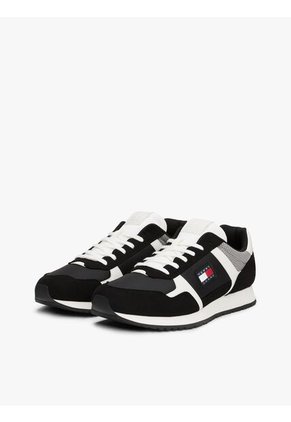 Tenis Negro Retro Dentadas En Mezcla De Ante Tommy Hilfiger