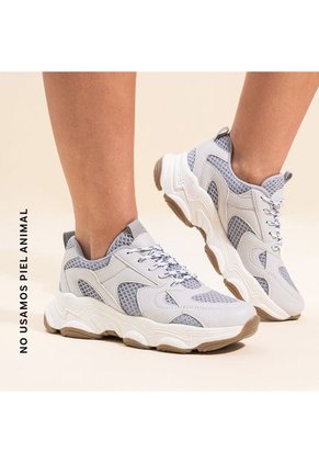-Tenis plataforma -suela bicolor -cortes en sintetico y malla Material: