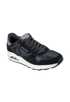 Los tenis Skechers UNO para hombre combinan estilo urbano y comodidad superior, ideales para el uso diario. Su capellada en material sintético tipo cuero brinda un look moderno y mayor durabilidad. Incorporan plantilla Air-Cooled Memory Foam, que ofrece amortiguación suave, transpirabilidad y confort prolongado durante todo el día. La entresuela con cámara de aire visible ayuda a absorber impactos y proporciona una pisada más estable, mientras que la suela de caucho con tracción garantiza buen agarre y seguridad al caminar. Su diseño en color negro los convierte en un calzado versátil, perfecto para outfits casuales y urbanos.Ref.: 183053BLK