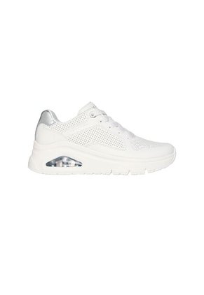 Los Skechers UNO Icon Mujer (ref. 177767-WHT) son la combinación perfecta entre estilo urbano y comodidad. Con un diseño moderno y elegante, estos tenis están pensados para quienes buscan destacar sin sacrificar confort. Su parte superior de cuero perforado con detalles metálicos añade un toque de sofisticación, mientras que la plantilla Air-Cooled Memory Foam® y la entresuela con cámara de aire visible Skech-Air® garantizan una caminata cómoda y amortiguada. Ideales para el día a día, ofrecen versatilidad y estilo en cada paso.• Referencia: SK-177767-WHT• Color: Blanco con detalles metálicos• Material del empeine: Cuero perforado con detalles metálicos• Plantilla: Air-Cooled Memory Foam®• Entresuela: Cámara de aire visible Skech-Air®• Suela exterior: Sintética con tracción flexible• Altura del talón: Aproximadamente 3,8 cm• Tecnologías de confort: Air-Cooled Memory Foam® y Skech-Air®• Uso recomendado: Uso diario, estilo urbano, caminatas ligeras• 60 días de garantía• Producto 100% Original.ATENCIÓN: La imagen de referencia puede presentar alguna diferencia de tono entre la imagen y el producto real, debido al tratamiento de la imagen y la calibración del color de su monitor*.