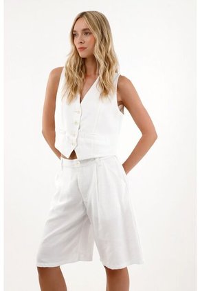 ¡Así la pediste, así la diseñamos!Una bermuda diseñada para moverse contigo entre lo casual y lo pulido. Su silueta larga con prenses en el delantero aporta un fit fresco y estilizado, mientras los bolsillos laterales y de parche en la parte posterior refuerzan la practicidad con un toque utilitario. Ideal para combinar con camisas fluidas o camisetas básicas y lograr un look effortless en tendencia. Confeccionada en tela liviana de caída suave, asegura comodidad en cada movimiento y se ajusta de forma clásica con cierre y botón. Sobre la colección: Parte del drop Tennis que celebra la frescura y la comodidad como protagonistas de la temporada.