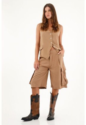 Tennis Bermuda Larga Café Con Bolsillos Para Mujer