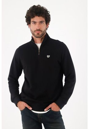Tennis Buzo Para Hombre De Algodón Negro Regular Fit Con Cuello Alto Y Media Cremallera