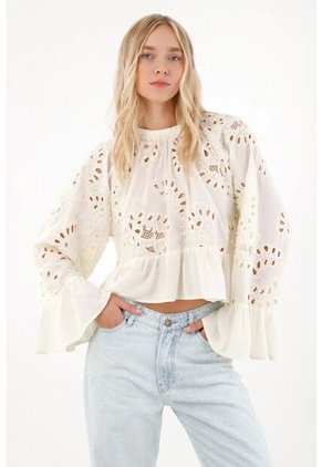 ¡La suma de muchos detalles que hoy son tendencia!Los detalles de boleros en manga y ruedo le dan un toque romántico y delicado, perfecto para combinar con jeans, pantalones de lino o faldas para un look casual chic. Ideal para brunch, paseos al aire libre o planes donde quieres sentirte cómoda.Confeccionada en tela de ojalillo ligera y transpirable, con cuello redondo que aporta sencillez y versatilidad.Sobre la colección: Forma parte de nuestra colección de tops versátiles y femeninos, pensada para quienes buscan prendas que acompañen su vida diaria con autenticidad y estilo.