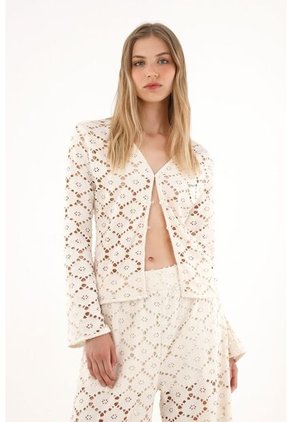 ¡Un esencial con textura para destacar! Los tejidos siguen siendo lo más top de esta temporada, siendo tan versátiles como imprescindibles. Características* Color: crudo * Manga larga * Cuello en V * Largo pretinero * Tela en tejido de punto * Detalles desagujados * Ajuste con botones en delantero * Material: Poliéster 78% Algodón 13% Viscosa 9% Sobre el fit Su silueta cómoda y el tejido de punto con detalles desagujados le dan un aire ligero y femenino, perfecto para un look fresco y delicado.