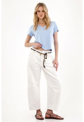¡Vas a querer repetirla en todos los colores! Una camiseta que deja de ser básica cuando imaginas todas las formas de combinarla. Características* Color: azul * Silueta regular * Cuello en V * Manga corta * Tela suave * Material: Algodón 47% Viscosa 47% Elastano 6% Sobre el fit Una silueta que se adapta a todo; desde un look effortless con jeans, hasta debajo de un blazer para un vibe más pulido. Además, su tela suave la hace irresistible al tacto.