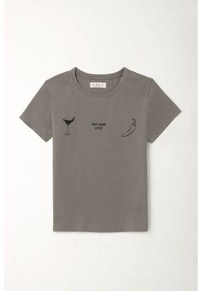 ¡Tu mood del día, pero en camiseta! Es de esas prendas que elevan lo simple y transforman cualquier look casual en algo con intención. Características* Color: gris * Manga corta * Cuello redondo * Estampado gráfico + texto en el delantero * Silueta regular * Material: Poliéster 65% Algodón 35% Sobre el fit Fresca, fluida y con ese corte que te deja moverte (y expresarte) libremente. Póntela para contrastar con prendas más formales, para armar un look effortless con denim, o simplemente cuando quieras que tu outfit diga algo por ti.