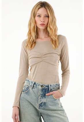 Tennis Camiseta Brillante Manga Larga Café Para Mujer