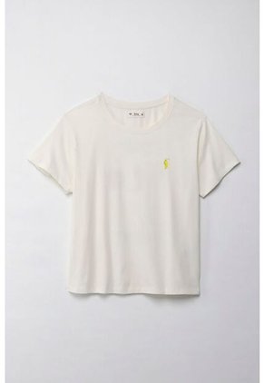 ¡Un front sutil, una back impactante! Esta camiseta cuenta con detalles únicos que elevarán cualquier outfit al mejor estilo Tennis. Características* Color: crudo * Cuello redondo * Manga corta * Silueta regular * Estampado en punto corazón * Estampado maxi en espalda * Material: Algodón 100% Sobre el fit Cómoda y relajada, perfecta para quienes buscan un estilo effortless pero con personalidad. Combínala con jeans, joggers o faldas para jugar con su versatilidad.