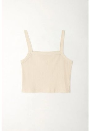 ¡Un básico coqueto y estilizado! Con esta camiseta en tu clóset podrás descubrir tanto estilos como maneras de llevarla. Características * Color: crudo * En rib * Con cargaderas * Escote cuadrado * Escote y sisa sesgada * Largo pretinero * Material: Poliéster 63% Algodón 34% Elastano 3% Sobre el fit Úsala sola para los planes tranquilos y soleados, o como base para outfits más formales.