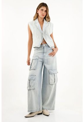 ¡Detalles que enamoran! Cuando de lucir bien se trata, las prendas complementarias como este chaleco, son indispensables. Características- Color: azul - Tono claro - Cortes decorativos - Cadenas de brillo en delantero - Cuello solapa - Material: Algodón 100% Sobre el fit Un compañero esencial para los días en lo que quieres lucir más auténtica y a la moda.