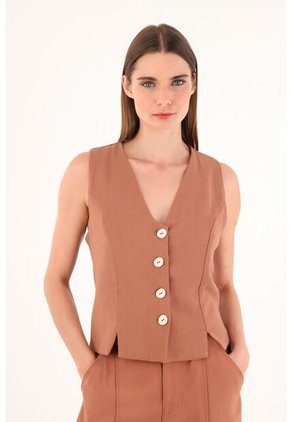 Chaleco Para Mujer Plano Color Café Marca Patprimo #30250037