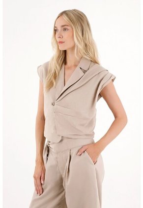 ¡Layer it, style it, love it: el chaleco que transforma cualquier outfit en un statement effortless!Su diseño cruzado con ajuste de botón y detalles de prenses en los costados le da un twist moderno a tu look. Con apariencia de lino, liviano pero estructurado, con prenses que aportan movimiento y forma, y cierre con botón que asegura un fit cómodo y estilizado. Una pieza versátil que juega entre lo casual y lo sofisticado.Sobre la colección: Parte de nuestra colección de piezas modernas para mujeres que aman la ciudad. Layer it your way y deja que tu outfit hable por ti.
