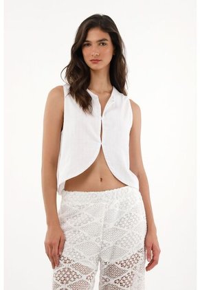 Tennis Chaleco En 100% Lino Blanco Para Mujer
