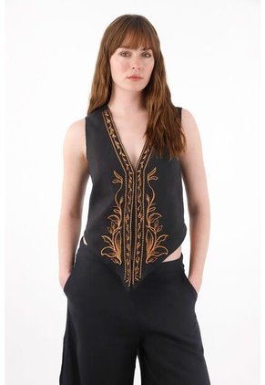 Tennis Chaleco En 100% Lino Con Bordados Para Mujer
