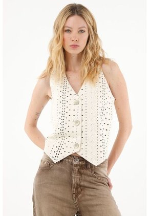 Chaleco Para Mujer Plano Color Crema Marca Patprimo #30250041