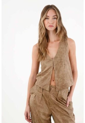 Tennis Chaleco Sporty Con Escote En V Café Para Mujer