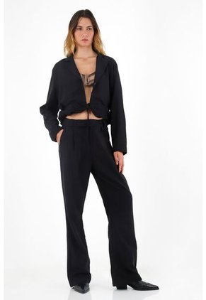 ¡Siluetas que siempre te favorecen! Usa esta chaqueta en tus planes casuales preferidos y resalta con estilo y autenticidad. Carcaterísticas Color: negro - Cuello de solapa - Efecto englobado en ruedo - Ajuste de broche - Sesgo que anuda en ruedo - Tipo blazer - Cropped - Material: Forro: Rayón 100% Exterior: Algodón 52% Rayón 48% Sobre el fit Cuenta con detalles que la convierten en el complemento perfecto para cualquier plan semiformal que involucre una salida por la ciudad.