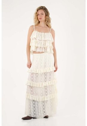 Topmark Falda Larga Con Flores En Pretina Crudo Para Mujer