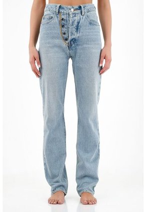 ¡Los pequeños detalles sí son importan! Y este jean es la prueba de que nunca los pasamos por alto. Características- Color: azul - Recto - Tiro alto - Cinco bolsillos - Ajuste de botones - Jota expuesta decorativa - Material: Algodón 100% Sobre el fit Su confección está pensada para comodidad y frescura, que te permita siempre moverte en el día a día con total confianza.