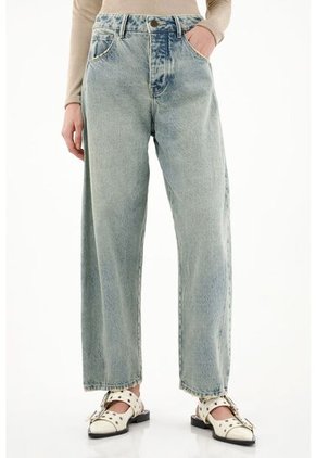 ¡El vaquero más cute de la temporada! Lúcelo con el estilo que te define y consigue los outfits más femeninos y delicados. Características- Color: azul - Tono medio vintage - Ajuste de botones - Cinco bolsillos - Pinzas decorativas en el posterior - Desgastes en boca de bolsillos y bota - Material: Algodón 100% Sobre el fit La silueta Horseshoe mantiene su tiro alto, pero es mucho más fluida a medida que baja. Es el denim perfecto para esos outfits con los que buscas destacar, sin sacrificar tu comodidad.
