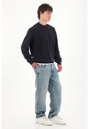 ¡Un look para cada día! Un buen diseño en denim nunca estará de más en tu armario. Características* Color: azul * Loose fit * Tiro medio * Silueta amplia * Ajuste con cierre y botón * Cinco bolsillos * Tono medio froster * Reservas en costuras * Material: Algodón 100% Sobre el fit Tus outfits favoritos estarán cada vez más cerca cuando lleves este clásico Tennis a casa.