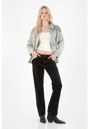 ¡De esas piezas que no siguen la moda, la reinterpretan! Este jean es para esos días en los que quieres sumar textura, calidez y un toque distinto a tus looks, además, su vibe vintage lo hace ideal para combinar con básicos neutros o para armar un outfit más bold con capas, estampados o accesorios llamativos. Características* Color: negro * Recto * Cinco bolsillos * Ajuste con cierre y botón * Tiro medio * Tela corduroy con overdye * Material: Algodón 98% Elastano 2% Sobre el fit Su corte recto aporta estructura sin restar comodidad. Cae limpio desde la cadera, creando una silueta versátil que funciona con botas, mocasines o tenis, dependiendo de la actitud del día.