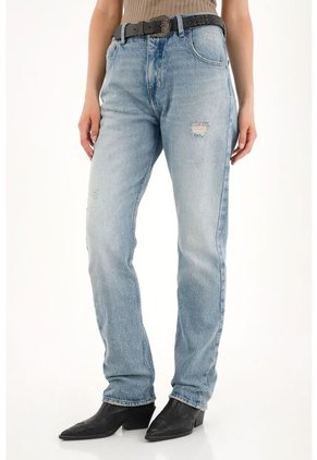 Tennis Jean Recto De Tiro Medio Con Doblez En Pretina Azul Para Mujer