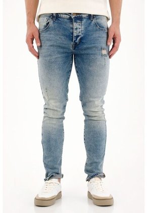 Tennis Jean Recto Tiro Medio Con Desgastes Azul Para Hombre