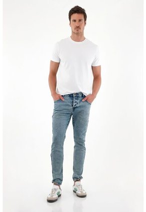 Tennis Jean Skinny De Tiro Medio Azul Claro Para Hombre