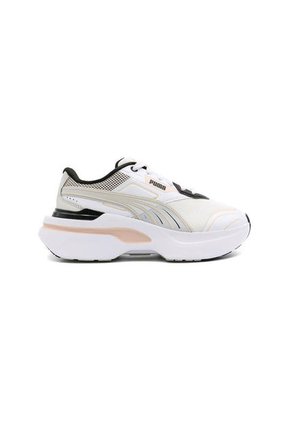 Inspirada en la colisión de la vida real y la vida digital, la zapatilla deportiva Kosmo Rider Feminine Tech tiene un aspecto inspirado en la tecnología con nuevas líneas de corte y paneles y una nueva herramienta dinámica. La base de malla de la zapatilla tiene superposiciones prensadas con calor y una raya característica PUMA de TPU con textura y líneas en relieve en relieve.