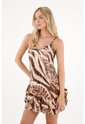 ¡El vestido que convierte lo cotidiano en un plan con estilo!El escote en V estiliza y aporta un aire sofisticado, mientras los boleros en el ruedo dan movimiento y un guiño romántico. Perfecto para llevar con sandalias planas en el día o botas para un look más edgy.De largo corto y con estampado protagonista, está diseñado en tela ligera que se adapta a tus movimientos sin perder frescura.Sobre la colección: Un must de nuestra colección de vestidos estampados, pensada para darle vida y actitud a tus outfits esta temporada.