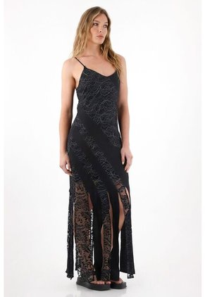 Vestido Largo Anudado Negro Ragged Pf31511326