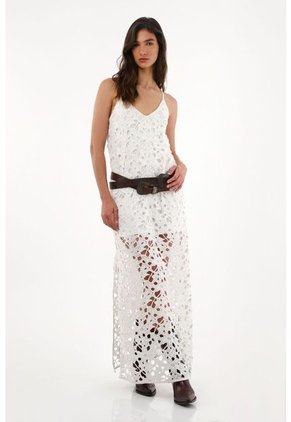 Tennis Vestido Largo Tejido Con Aberturas Crudo Para Mujer