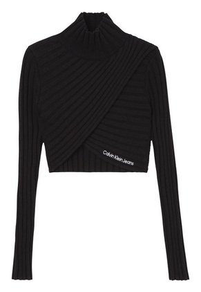 Este Top Está Confeccionado En Su Totalidad Con Materiales Sostenibles.•Mezcla De Lana Merino•Textura De Punto De Canalé•Ajuste Regular Cropped•Cuello Perkins•Mangas Largas•Parte Delantera Cruzada Fija•Bordado De Calvin Kle