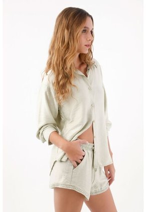 Topmark Bermuda Para Mujer En Viscosa Verde Salvia Fit Relajado Con Ribete Calado