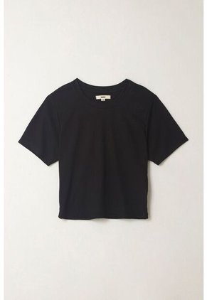 ¡Clásica y con intención! Los básicos nunca pasan de moda y esta camiseta es la muestra de ello. Características* Color: negro * Manga corta * Cuello redondo * Ajustada * Tela con textura acanalada * Material: Poliéster 92% Elastano 8% Sobre el fit Diseñada para adaptarse a cualquier ocasión. Combínala con jeans de moda o pantalones Wide Leg y domina el streetwear.