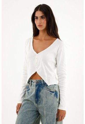 Topmark Camiseta Crudo Manga Larga Con Escote En V Para Mujer