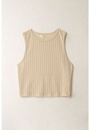 ¡Un clásico que siempre destaca! Esta camiseta es un básico elevado con un toque boho que siempre logra hacer la diferencia. Características* Color: crudo * Manga sisa * Cuello redondo * Tela tejida * Material: Poliéster 99% Elastano 1% Sobre el fit Porque una buena camisa siempre salvará el día. Este diseño brinda confort y versatilidad para cada ocasión.
