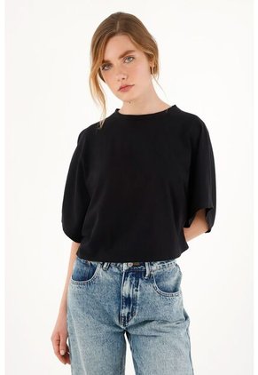 Tennis Camiseta Boxy Fit Manga Sisa Negra Para Mujer