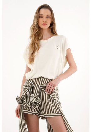 Topmark Camiseta Oversize Con Bordado Decorativo Crudo Para Mujer