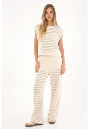 Topmark Camiseta Tejida De Manga Rodada Crudo Para Mujer
