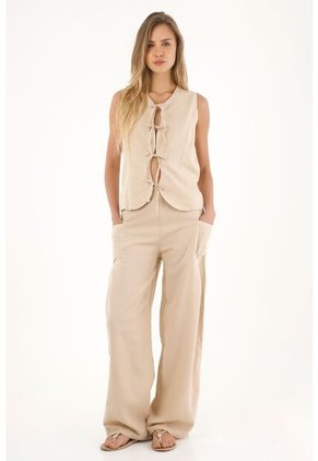 Topmark Chaleco De Tiras Que Anudan En El Frente Café Para Mujer