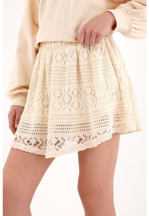 Tennis Falda Corta Para Mujer En Lyocell Marfil Fit Evasé Con Calado Floral