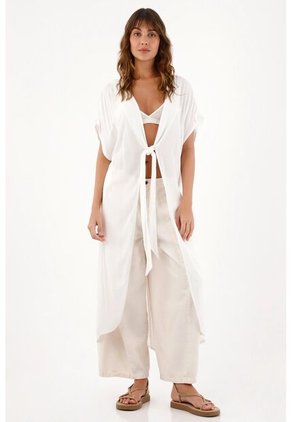 ¡La moda es tu idioma secreto! Haz que cada look sea tu manera de gritarle al mundo quién eres. Características * Color: crudo * Kimono * Manga corta * Escote en V con amarre de tiras * Tela liviana * Semi transparencia * Material: Viscosa 100% Sobre el fit Una tercera pieza como esta merece un lugar especial en todo armario femenino, para complementar todos los looks y destacar sin esfuerzo.