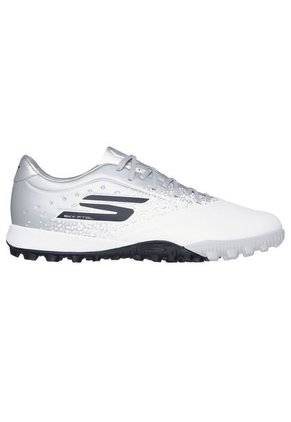 Guayos/turf ligeros diseñados para fútbol en superficies sintéticas o césped artificial. Su construcción prioriza la ligereza, comodidad y control del balón: la parte superior sintética ultraligera con cordones ofrece un ajuste seguro, mientras la suela de goma tipo turf con patrón de tracción permite arrancadas, frenadas y cambios de dirección rápidos y estables. La amortiguación con espuma interna proporciona confort incluso en sesiones largas de juego