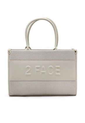 Tote bag estructurado de diseño moderno y elegante, elaborado en combinación de textil tipo lona y material sintético de alta calidad. Cuenta con asas superiores cómodas para llevar al hombro o en la mano y herrajes metálicos laterales que permiten adicionar cargadera larga (no incluida). En el frente destaca el logo 2FACE en alto relieve, aportando un toque distintivo y sofisticado, Ideal para el uso diario, perfecto para llevar tus esenciales con estilo y comodidad. Garantía de 2 meses directamente con el vendedor en cierres, herrajes y costuras. Alto 24 Largo 34 Ancho 9.5