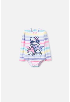 ¡Splash de ternura! Este traje de baño de manga larga con estampado allover está listo para días de piscina, mar o juegos con manguera. Es una pieza cómoda, divertida y con ese toque Hello Kitty que siempre roba sonrisas. ¡A nadar con estilo!